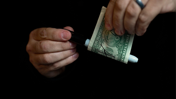 Borrow any bill, have the bill signed with a sharpie. Wrap the bill around the sharpie, show the Sharpie INSIDE the bill. The Sharpie slowly and visually melts through the signed bill. This looks GREAT. Everything can be examined immediately after the effect.