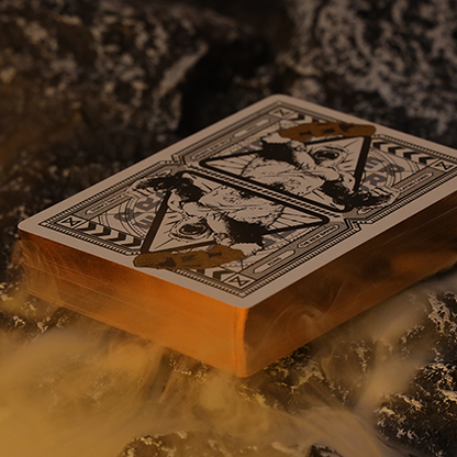 Gilded edges & foiling playing cards: Adding an extra touch of opulence, the special editions feature stunning gilded edges and foiling on the cards, with the symbolic colors of the titans. This exquisite detail elevates the visual appeal, creating a striking upgrade of the colors to the cards' artwork and enhancing the overall luxurious feel of the decks.