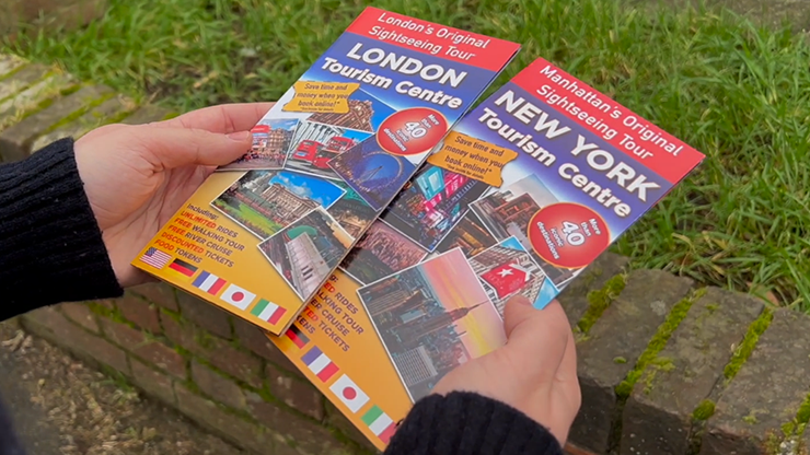 You grab a Tourist Guide flyer and ask your spectator to choose any destination they'd like to visit. Moments later, you are able to read their mind and determine which landmark they've chosen. You can then reveal a chosen Tube station (London flyer) or a chosen Broadway show (NYC flyer).